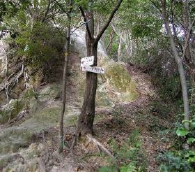 しばらく行くと満願寺との分岐部。右に行くと満願寺。左上に登ると岩場。